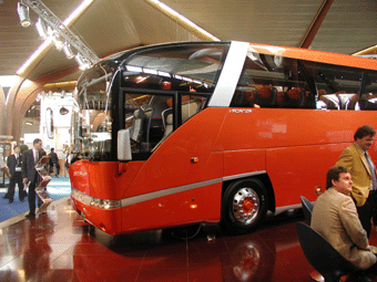 从客车专业技术的角度来考察,博览会最大的特点是推出许多新车型,几乎所有的欧洲客车制造商都展示了新颖的车型,其社会效果远超出制造商们的期望。国内熟知的沃尔沃、尼奥普兰、奔驰、曼、范夫尔、伊萨利尔等公司,而像波兰的Solaris Vacanza、西班牙的Sunsundegui等公司推出的造型新颖的客车,同样吸引观众,12米的大客车也象轿车展一样,布置在转台上。