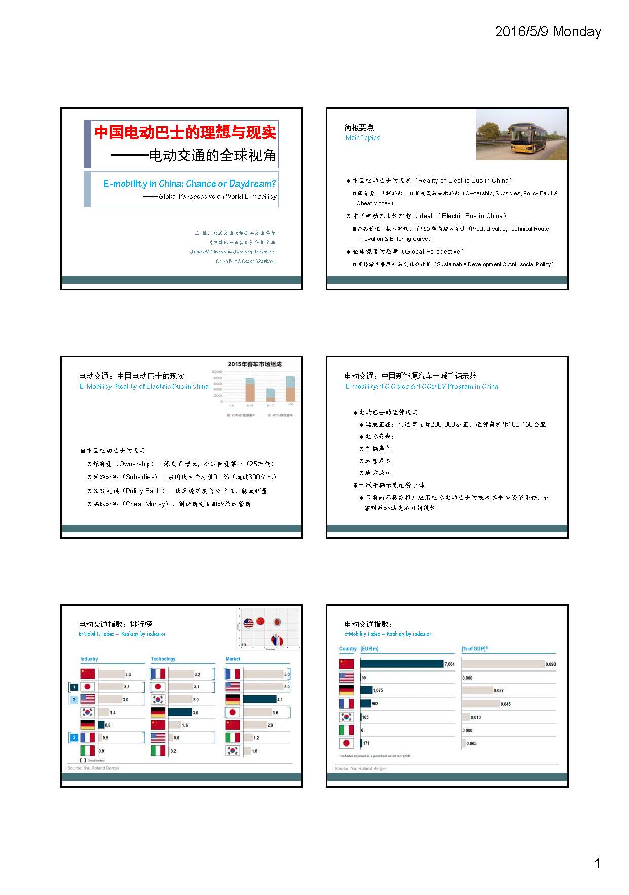 政策的另外一个问题,我们很多民营企业没有得到政府的资助,所谓的正规部队得到大量的补贴,而很多的创业公司都是民营的,他们在做一些新的思考、新的技术路线的探索,我们看到新能源汽车大潮中很多资本家的进入,推动了电动巴士产业的技术进步。公共交通电动化显然不是一个技术问题,它要涉及到社会、政治、经济、环境、设施等许多方面,是一个社会性的大问题,不是简单地用电驱动就可实现的的过程。