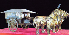 公元前35世纪的苏美尔人发明了轮和车,中国也是最早使用车的国家之一。相传在4600年前,黄帝创造了车,商代的甲骨文中就有许多 车 字。河南省安阳县大司空村发掘的商代车遗迹,复原的车模是一辆精致的两轮车,而在陕西省临潼县秦始皇陵附近出土的大型彩绘铜车马,更反映了中国2000多年前马车制造的精湛技艺。