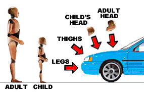 (25mph) accidents involving adults and children. A simulated leg
