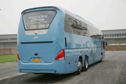 | 我们从降低风阻的角度出发,借鉴了747飞机前身造型以及欧洲同行的先进的设计元素,以独创的视角理念,匠心独运的外观设计,优化组合上下两块挡风玻璃,使上前挡风玻璃成30度的大倾角,大大降低了风阻系数。由于低风阻的造型设计以及匹配合理的底盘传动系统,使得时速在110km/h左右处于经济油耗区;辅之以缓速器、精磨桥、省油轮胎的运用,使车辆行驶平顺性提高,噪音和震动得到有效控制,节省油耗达15-20%。同时特别解决了客运车辆既要超大行李仓又要节省油耗的难题,使得两者得到了完美结合。 |
