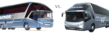 左图为尼奥普兰星航线客车,右图为中大A9客车