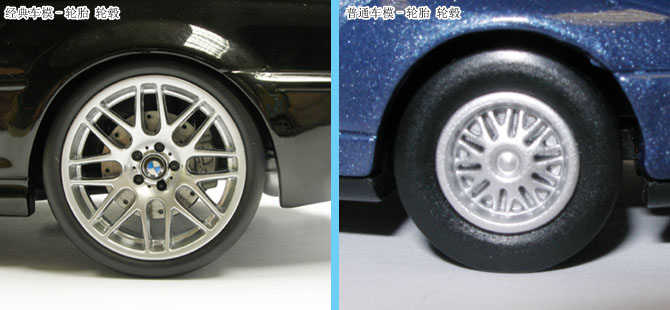 这也是最容易被爱好者忽视的细节,中高档产品的轮胎和轮毂设计自然是精益求精,碟刹,轮毂商标,轮胎细纹等一应俱全,有的产品甚至是使用轮胎材料来制作模型轮胎,而且可以拆卸更换。